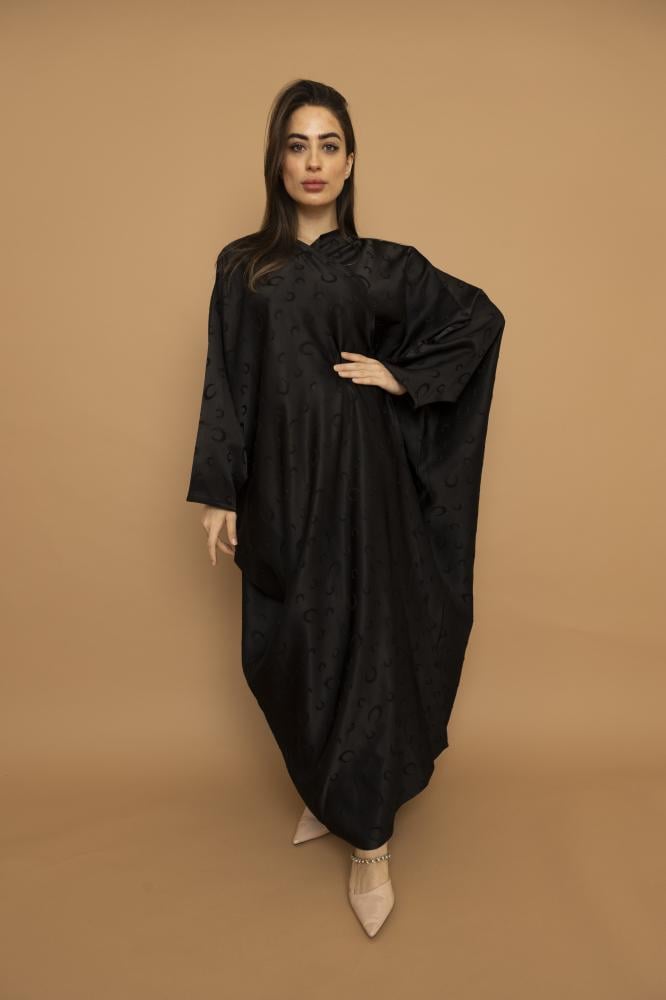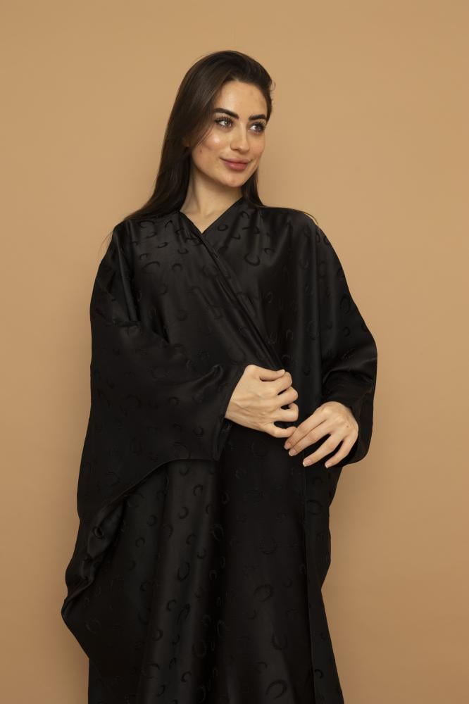 • القماش : كريب فاخر ناعم بنقوش خفيفة ولمعة هادئة تعكس الأناقة.