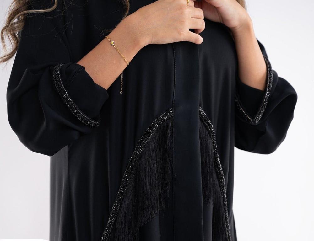 عباية مطرزة بالخرز مع أهداب فاخرة تصميم سهرة أنيق